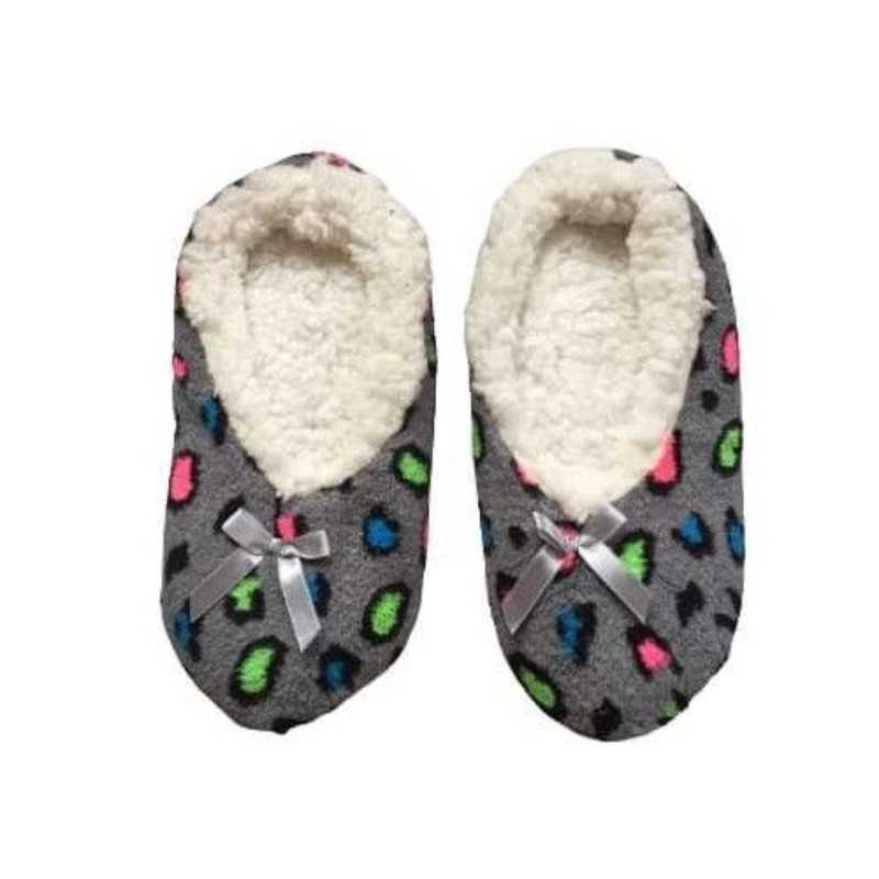 Γυναικείες κλειστές Παντόφλες - Κάλτσοπαντόφλες Γκρί με πολύχρωμες λεπτομέρειες