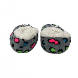 Γυναικείες κλειστές Παντόφλες - Κάλτσοπαντόφλες Γκρί με πολύχρωμες λεπτομέρειες Και εσωτερική επένδυση φλις