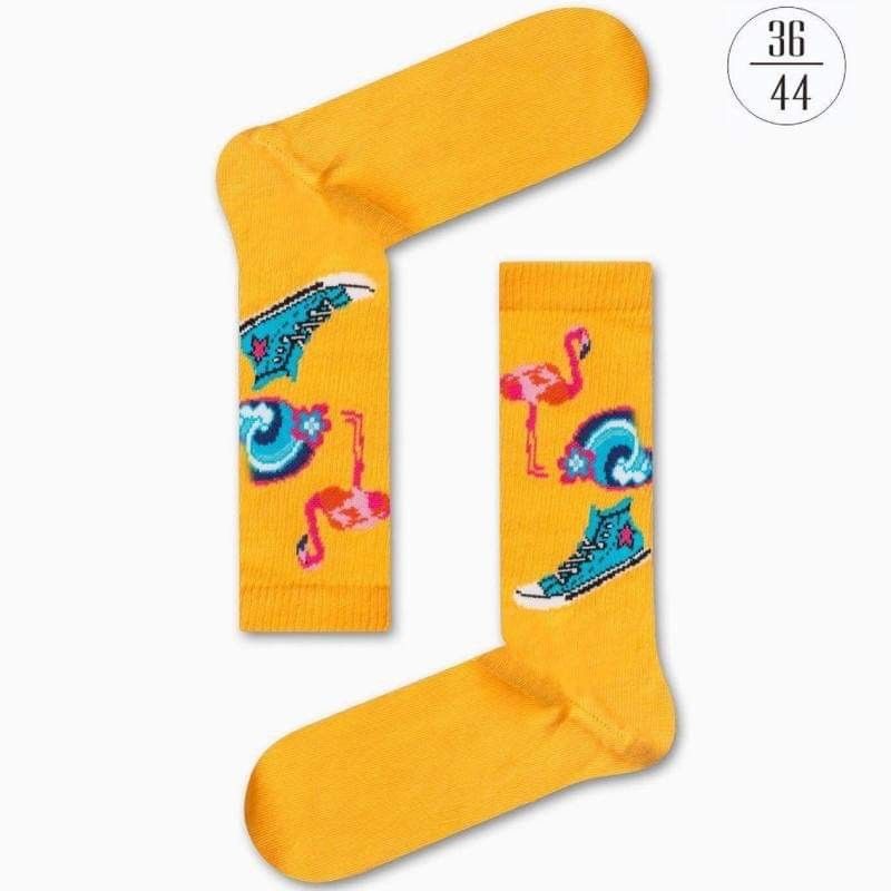 Γυναικείες Κάλτσες με σχέδιο Φλαμίνγκο σε Κίτρινο χρώμα