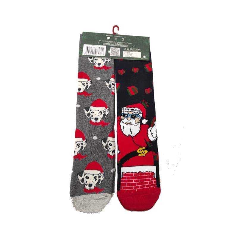 Γυναικείες Μακριές Βαμβακερές Χριστουγεννιάτικες Κάλτσες Christmas Socks F9 Σετ 2 ζευγάρια Χρώματος (Μαύρο-Γκρι)