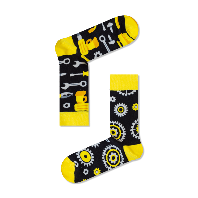 Ανδρικές Μακριές Βαμβακερές Κάλτσες με σχέδιο Engineer σε Μαύρο - Κίτρινο χρώμα