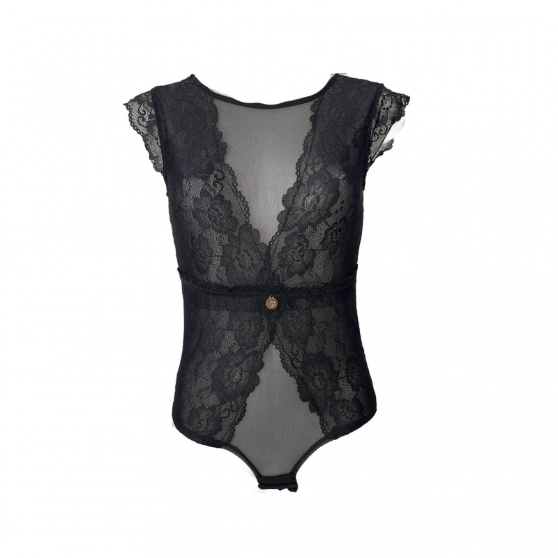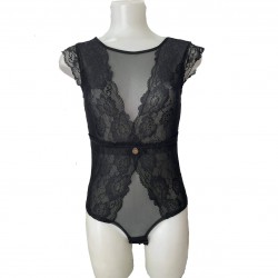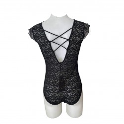 Γυναικείο Δαντελένιο Κορμάκι με σχέδιο στη πλάτη σε Μαύρο χρώμα