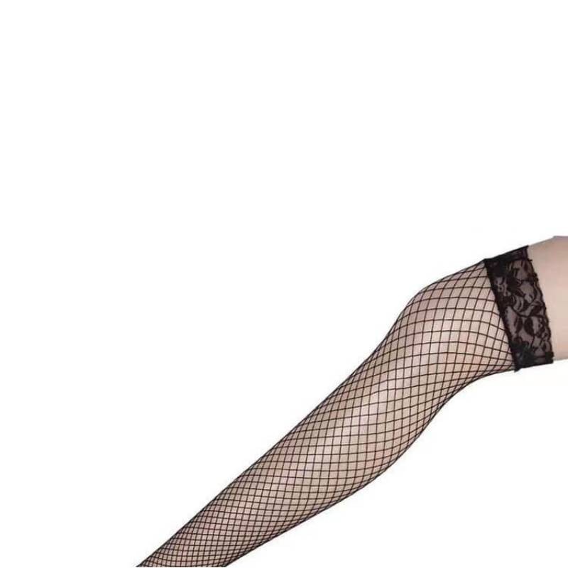 Γυναικείες Ψηλές Διχτυωτές Κάλτσες / Καλτσοδέτες με Δαντέλα σε Μαύρο Χρώμα