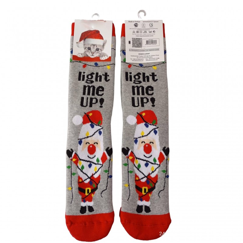 Γυναικείες Μακριές Χριστουγεννιάτικες Κάλτσες D94 σε Γκρι -Κοκκινο χρώμα