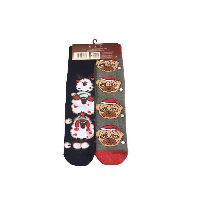 Γυναικείες Μακριές Βαμβακερές Χριστουγεννιάτικες Κάλτσες Σετ 2 ζευγάρια Christmas Socks E4