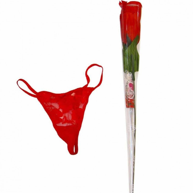 Πλαστικό Κόκκινο τριαντάφυλλο που μέσα στα πέταλα του είναι κρυμμένο ένα κατακόκκινο στρινγκ