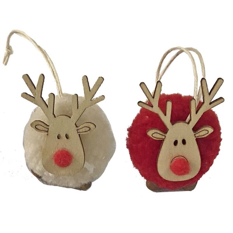 Στολίδι Κρεμαστό σχέδιο Μπάλα -Ταρανδος Σετ 2 τμχ σε Κόκκινο & Μπεζ χρωμα