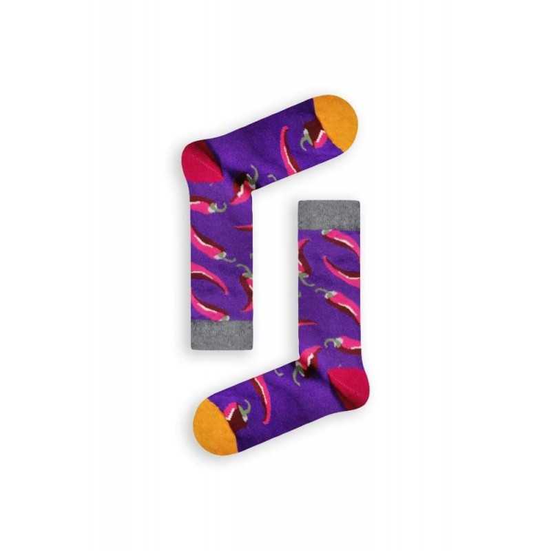 Γυναικείες Μακριές Βαμβακερές Κάλτσες με σχέδιο Chili Peppers σε Μωβ χρώμα