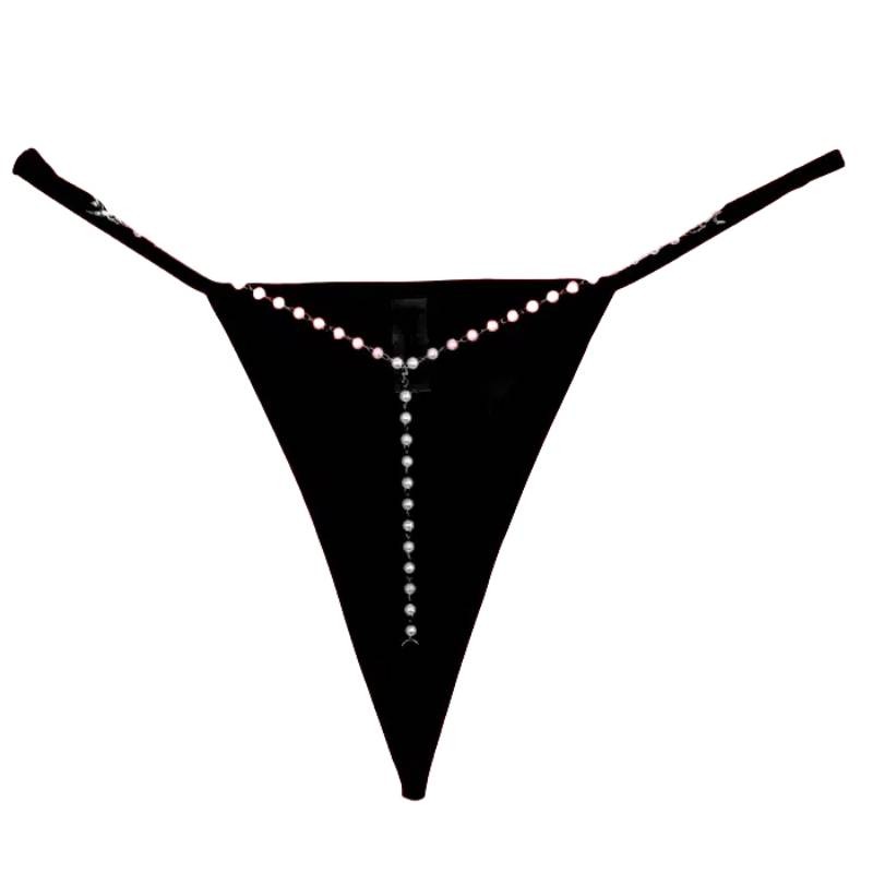 Sexy String με πέρλες σε Μαύρο χρωμα