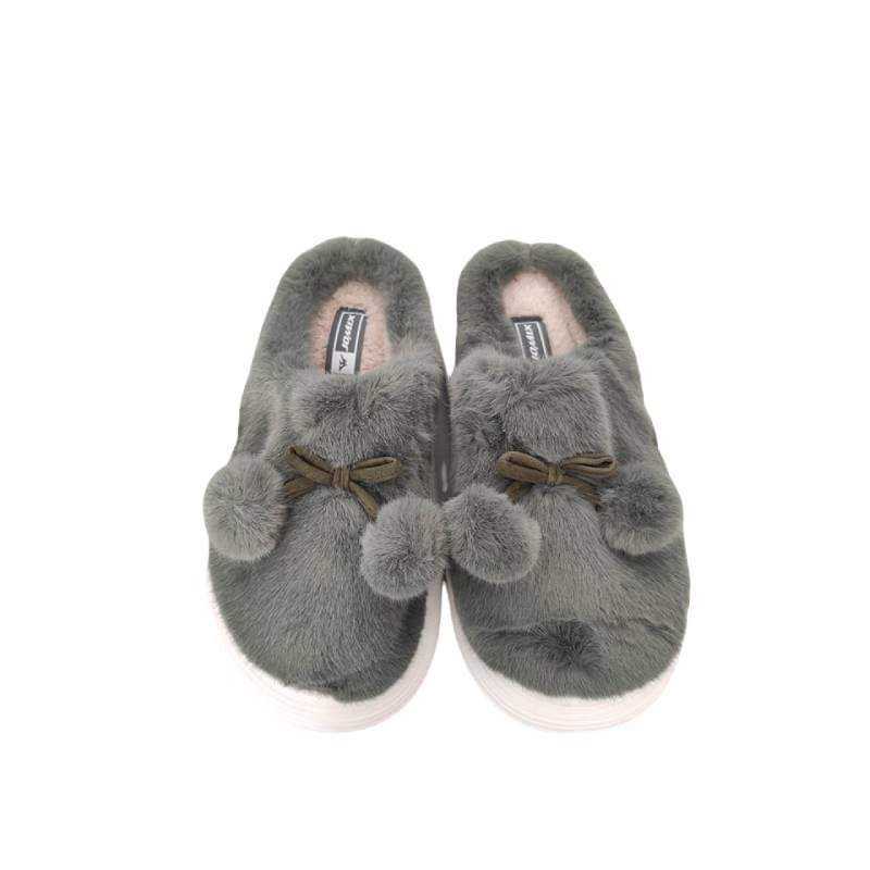 Γυναικείες Παντόφλες με διακοσμητικά φουντάκια και λευκό πάτο σε Λαδί χρώμα