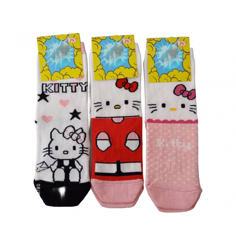 Παιδικές Κάλτσες σχέδιο Hello Kitty Σετ 3 τμχ σε Λευκό & Ροζ χρώμα